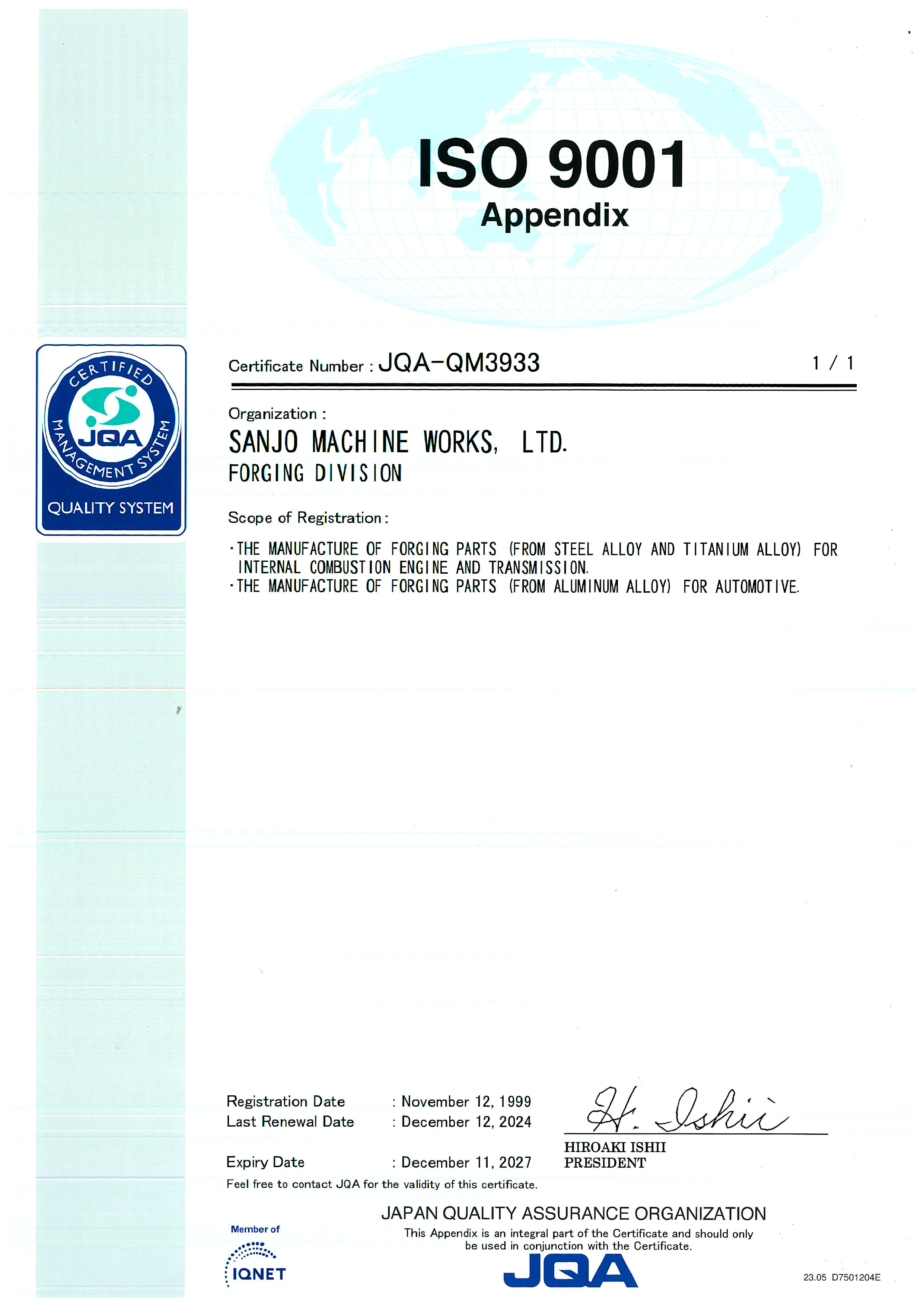 The Forging Department has its proprietary technologies that can be used to manufacture accurate and precisive yet light products and boasts the highest level technologies in the world. Our automated production lines enable us to manufacture precisive products with more reliability and higher uniformity. Also, we have established integrated production lines from forging to machining and assebly. Therefore, we have considerable advantages of rigorously implementing quality and production controls from materials warehousing operation to molding, production inspection.